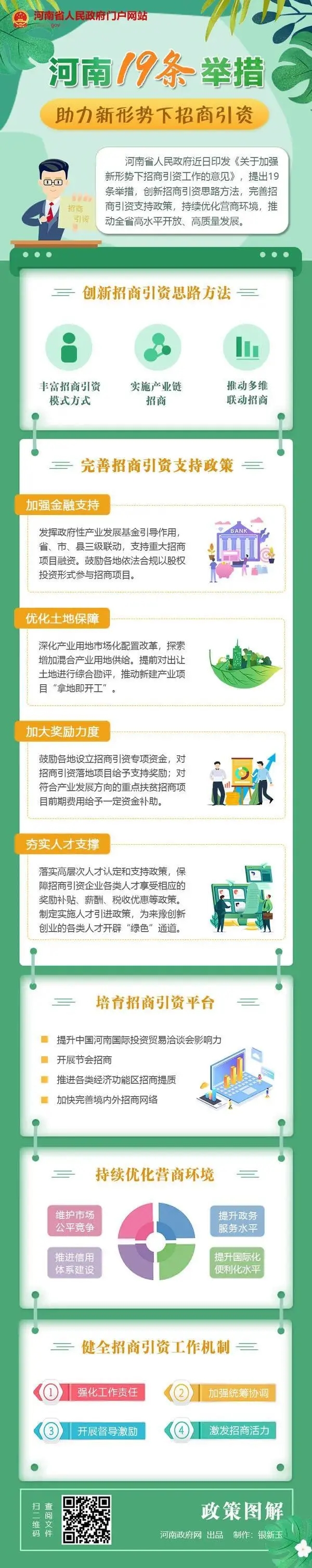 在新形勢下,河南如何做好招商引資工作?近日,河南省政府印發(fā)《關(guān)于加強(qiáng)新形勢下招商引資工作的意見》(以下簡稱《意見》),提出19條舉措,創(chuàng)新招商引資思路方法,完善招商引資支持政策,持續(xù)優(yōu)化營商環(huán)境,推動全省高水平開放、高質(zhì)量發(fā)展。