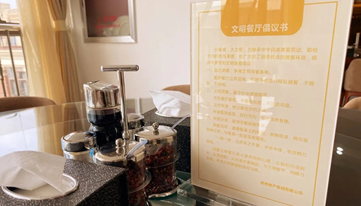 全集團(tuán)要積極傳承中華民族優(yōu)秀飲食文化和尊重勞動、珍惜糧食、勤儉節(jié)約的傳統(tǒng)美德,大力弘揚勤儉節(jié)約、艱苦奮斗的崇高精神,積極倡導(dǎo)“文明就餐,杜絕浪費”的用餐文化,營造“節(jié)約光榮、浪費可恥”的良好氛圍。