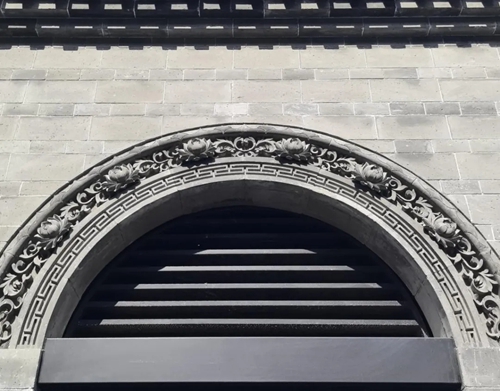 順著主街向街內(nèi)走去,便可尋到如意主題的15號樓,大量如意圖案被運用在墀頭、牖窗等部件,如意紋樣來源于商丘侯氏故居,象征著平安如意,代表了項目對到訪顧客的美好祝愿。