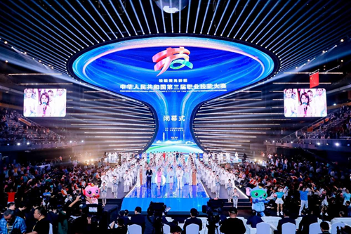 第三屆全國技能大賽是我國賽事規(guī)格最高、競賽項(xiàng)目最多、參賽規(guī)模最大、影響范圍最廣的綜合性國家職業(yè)技能賽事。閉幕式上,共為本次大賽106個(gè)競賽項(xiàng)目(66個(gè)世界技能大賽選拔項(xiàng)目和40個(gè)國賽精選項(xiàng)目)的獲獎(jiǎng)選手頒發(fā)獎(jiǎng)?wù)?。激?dòng)人心的頒獎(jiǎng)和創(chuàng)意十足的演出結(jié)束后,大賽組委會(huì)主任、人力資源社會(huì)保障部部長王曉萍宣布大賽閉幕。大賽組委會(huì)主任、河南省省長王凱致閉幕詞。承辦第四屆全國技能大賽的浙江省省長劉捷承接會(huì)旗。世界技能組織首席執(zhí)行官大衛(wèi)·霍伊發(fā)表視頻致辭。