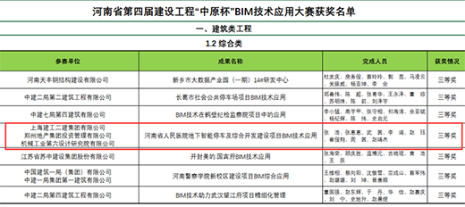 近日,由河南省住建廳指導(dǎo)、河南省建筑業(yè)協(xié)會(huì)主辦的河南省第四屆建設(shè)工程“中原杯”BIM技術(shù)應(yīng)用大賽獲獎(jiǎng)名單揭曉,經(jīng)過(guò)層層評(píng)審,由鄭州地產(chǎn)集團(tuán)投資管理有限公司主導(dǎo),上海建工二建集團(tuán)有限公司、機(jī)械工業(yè)第六設(shè)計(jì)研究院有限公司配合完成申報(bào)的河南省人民醫(yī)院地下智能停車及綜合開(kāi)發(fā)建設(shè)項(xiàng)目BIM技術(shù)應(yīng)用榮獲建筑類綜合成果三等獎(jiǎng)。