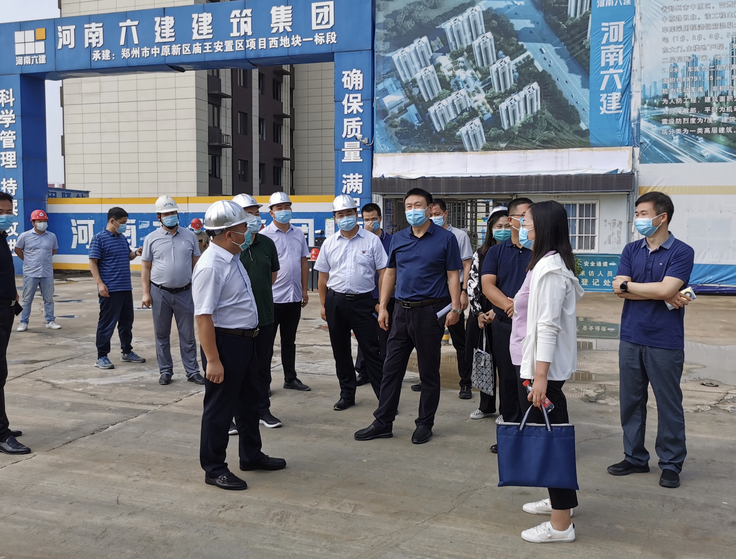 為加快安置房建設(shè),高質(zhì)量完成2021年度各項(xiàng)重點(diǎn)工作任務(wù),根據(jù)市委、市政府關(guān)于全市安置房建設(shè)的總體部署和要求,9月7日上午,鄭州市考評(píng)辦處長(zhǎng)徐彥民一行到鄭州地產(chǎn)集團(tuán)西流湖公司承建的中原新區(qū)起步區(qū)安置房項(xiàng)目對(duì)工程進(jìn)度及年度目標(biāo)完成情況進(jìn)行抽查。市考評(píng)辦副處長(zhǎng)丁樹(shù)偉、市高品質(zhì)城建領(lǐng)導(dǎo)小組辦公室綜合組組長(zhǎng)劉楊,市國(guó)資委考核分配處副處長(zhǎng)安培、規(guī)劃處副處長(zhǎng)于文峰,地產(chǎn)集團(tuán)黨委委員、董事長(zhǎng)助理馮洪濤,西流湖公司黨支部書(shū)記、董事長(zhǎng)、總經(jīng)理吉獻(xiàn)亮,副總經(jīng)理昌磊等陪同檢查。